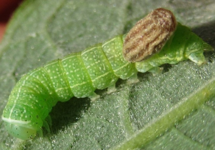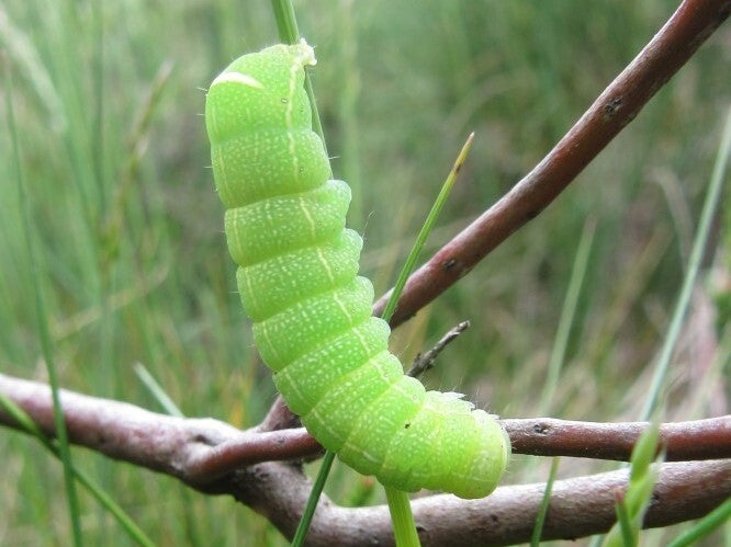 1: 28-05-2017, rups met cocon van een Microplitis sp., de rups leefde nog maar zal nooit een vlinder worden, Cochem (Duitsland).